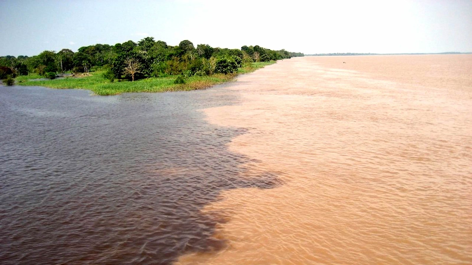 Meeting of the black waters of the Nanay River and the muddy waters of the Amazon River.