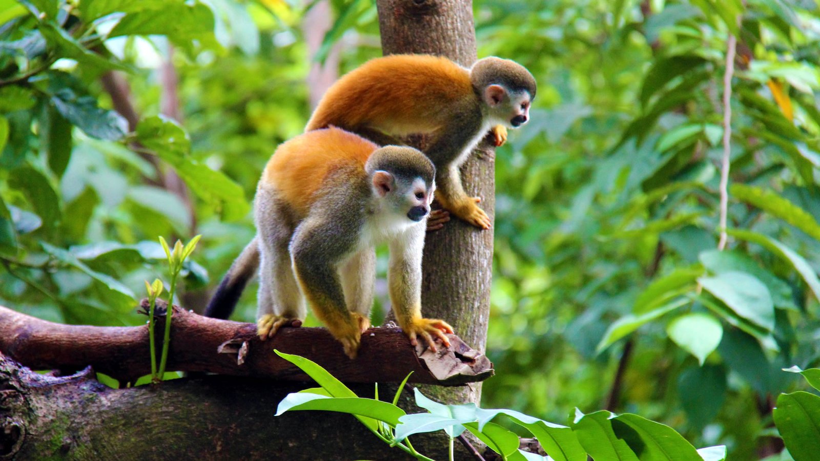 parrots and monkeys in their natural habitat.