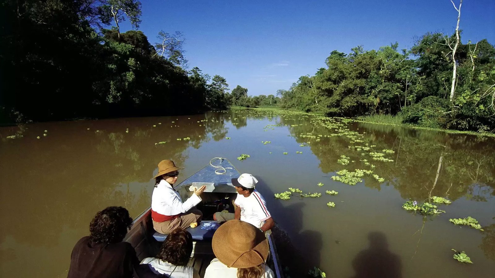 Departure by boat to meet the mighty Amazon river and its encounter with the Nanay river, a blackwater river.