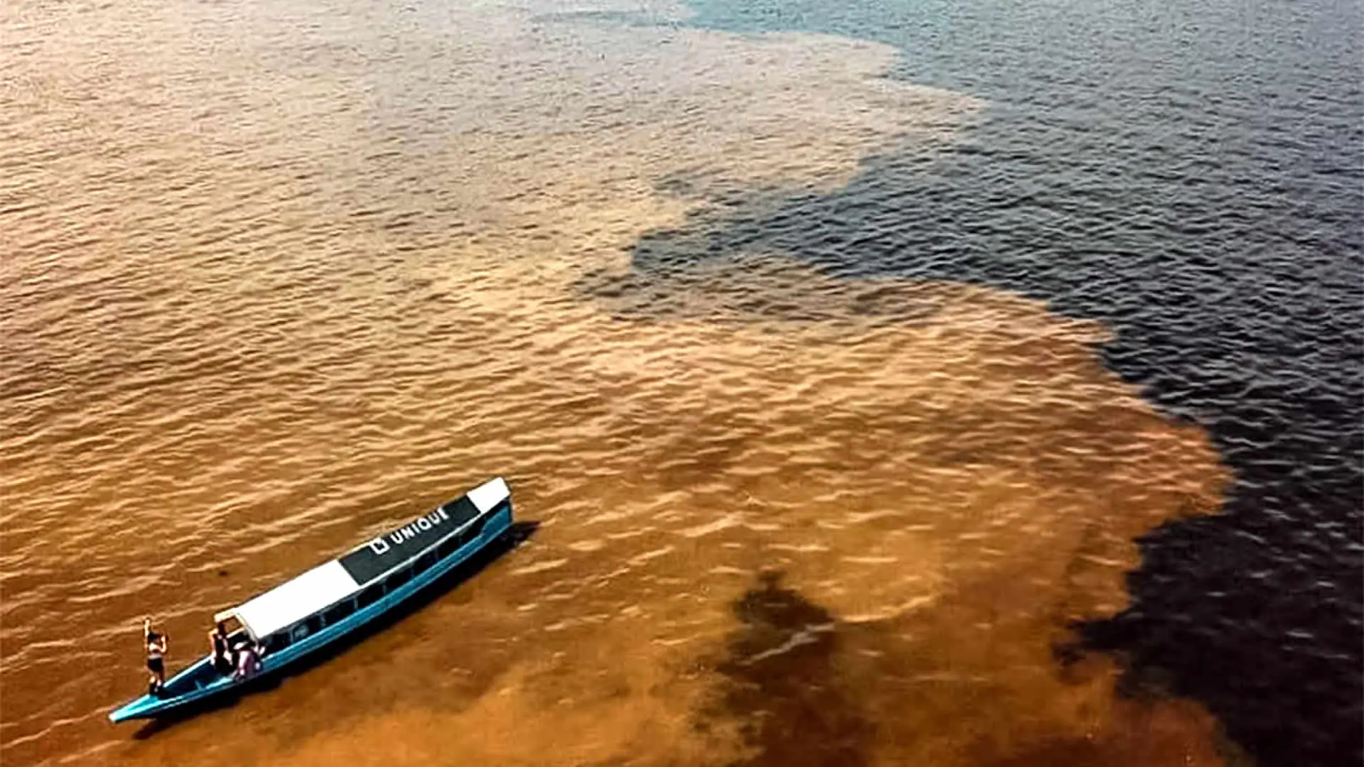 a black water river joins the mighty muddy Amazon that flows until the Atlantic ocean.