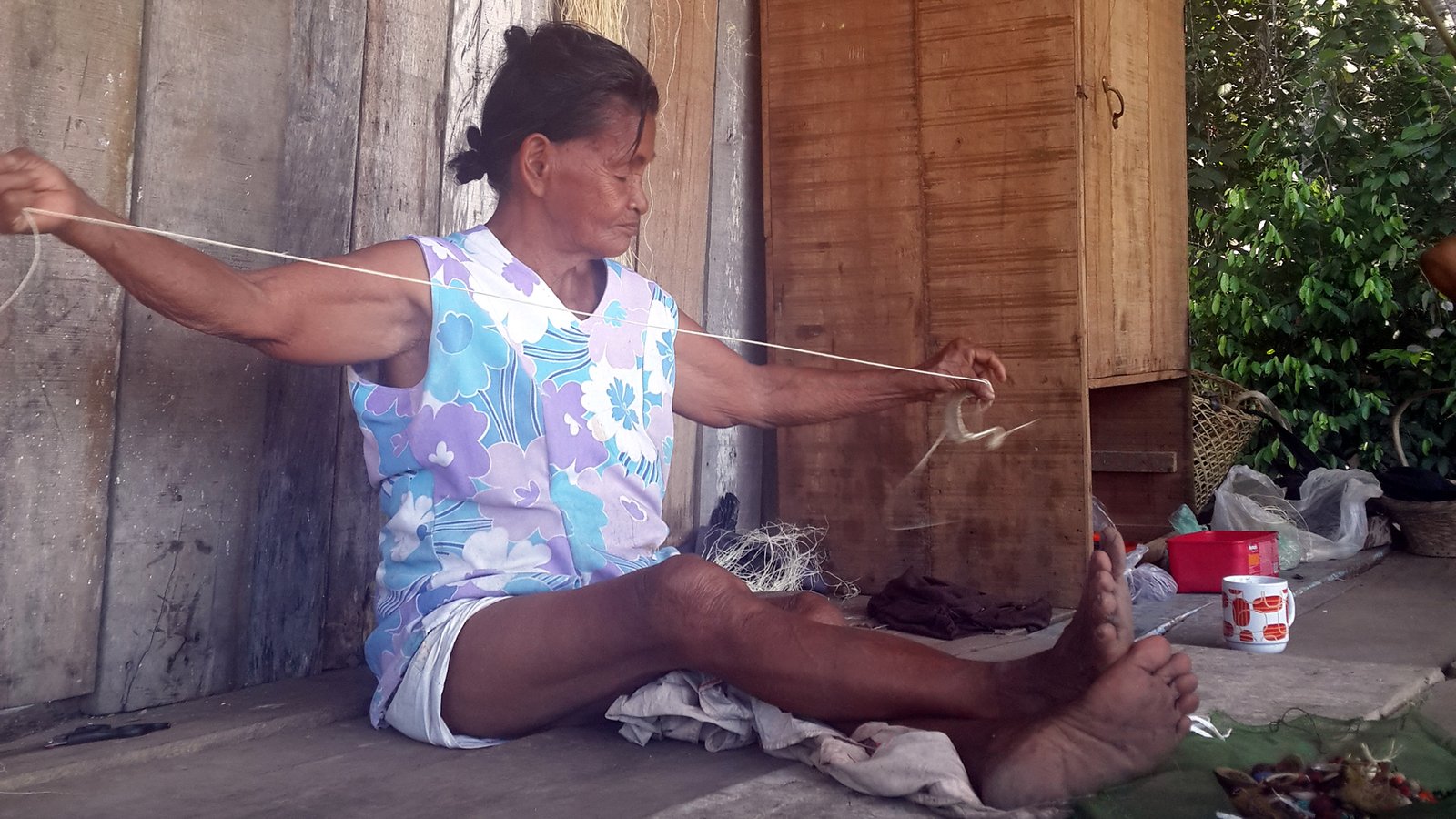 Bracelet weaving workshop course carried out by a kukama artist to all who wants to participate.
